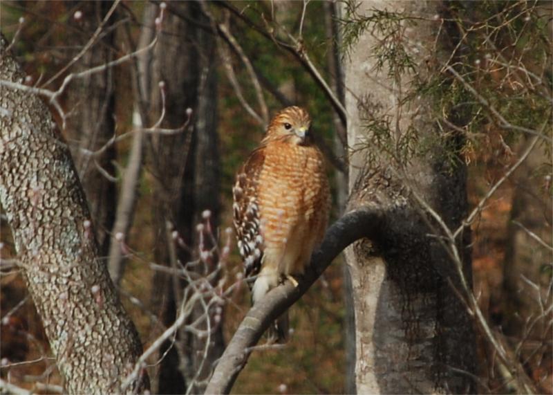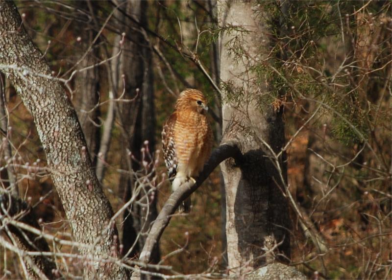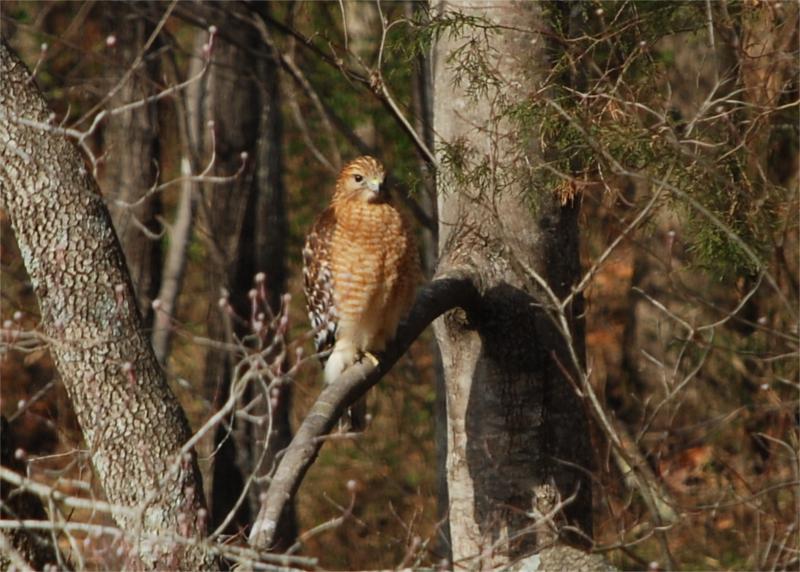 There are several hawks that hunt near the house. In the spring we often see the young hawks getting a few lessons from the parents. This weekend this one landed on a tree right off the living room. He looked intently to and fro for some time, turning his head at every subtle noise in search of a later afternoon meal. When a flock of crows flew over, they quickly spotted him and called out to one another warning of the predator.